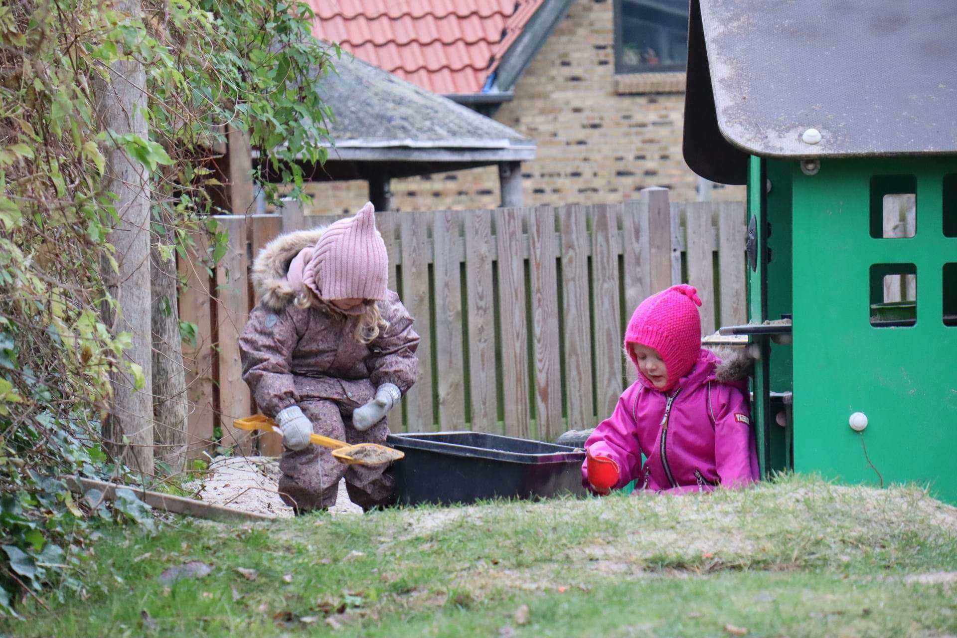 Vi er ude det meste af dagen, hvor vi laver forskellige planlagte aktiviteter (børnehaven har fx en fast ugentlig båldag).