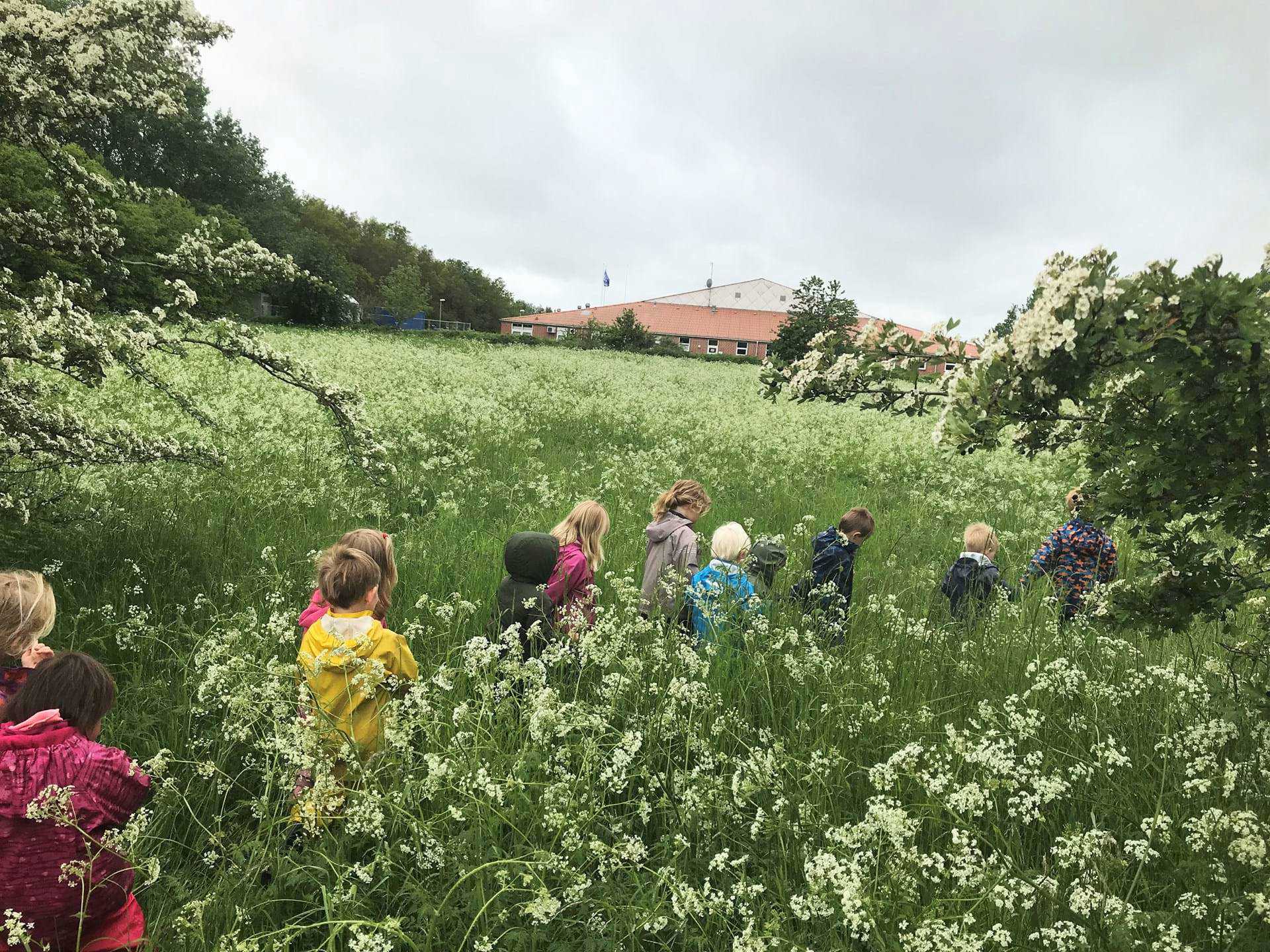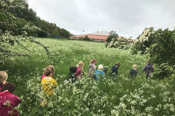 Vores hus er nærmeste nabo til Vestereng med skov, sø, marker og eng, så vi bruger også meget tid dér. Vi lader børnene få mulighed for at være aktive og for at kunne fordybe sig i naturen.